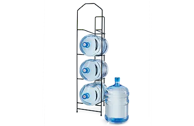 Vores stativ til vanddunke kan rumme op til 4 dunke à 18,9 liter.