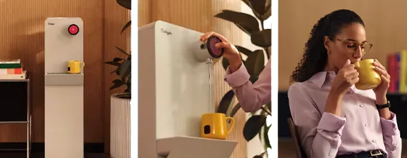 Det er også derfor, at design har fået en tydeligere plads i moderne vandløsninger. Purity-serien er udviklet med intuitive touchskærme, slidstærke kvalitetsmaterialer og et formsprog, der skal afspejle kvaliteten indeni. Essential løfter helhedsindtrykket med et moderne og pladsbesparende design, Advanced kombinerer høj ydeevne med slidstærke materialer og et udtryk, der passer dér, hvor du har brug for det, mens Prime tydeligt placerer sig i premiumsegmentet med eksklusive materialer og et mere raffineret udtryk. Når en løsning både fungerer sømløst i hverdagen og løfter helhedsindtrykket på arbejdspladsen, bliver den lettere at bruge, lettere at lide og lettere at stole på.